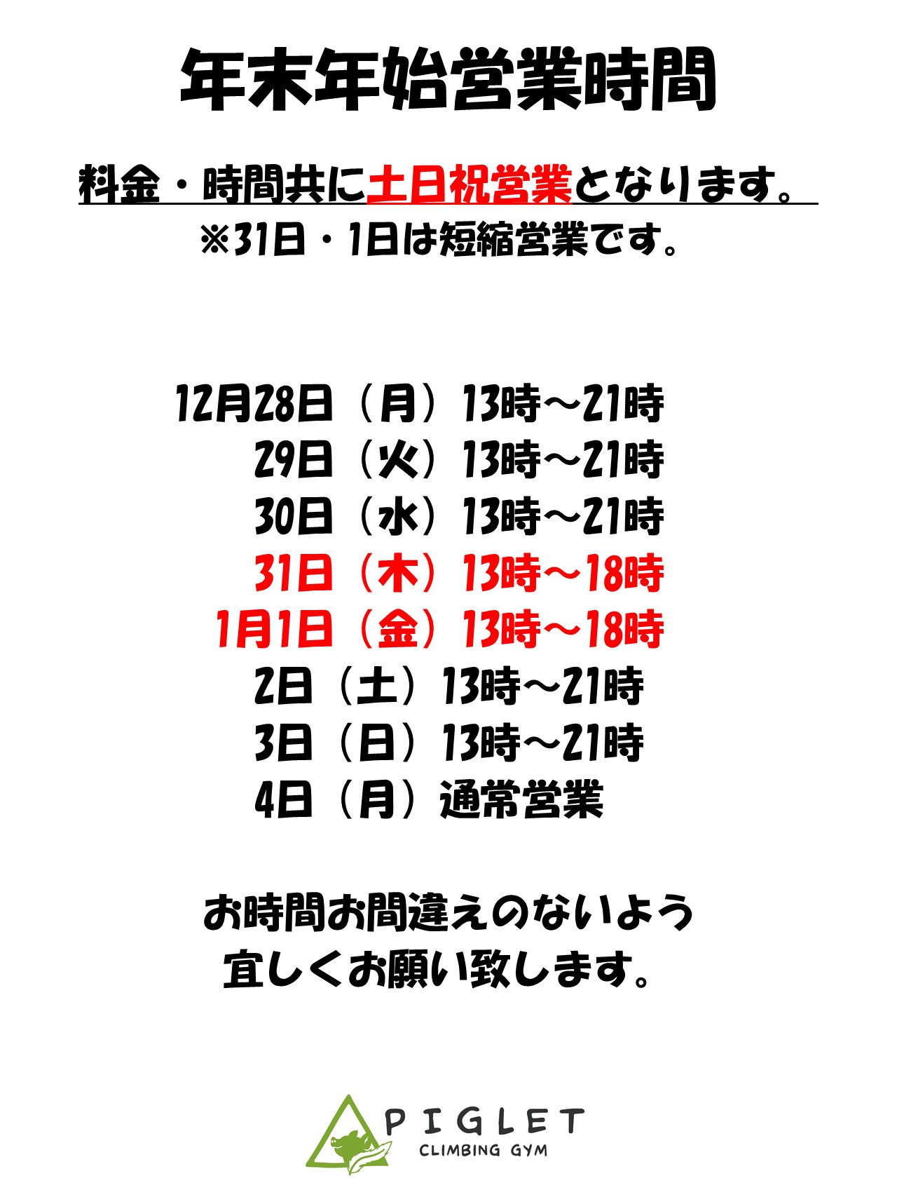 年末年始営業時間